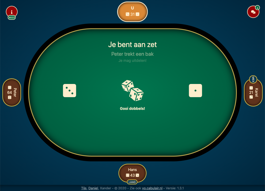 Then came the bugs. And there were a lot. Not only was our initial FSM not very neatly implemented, there were also a bunch of scenarios that we hadn’t seen coming. What if the player that is up next leaves the game right before his move? What happens if all players wait for one player to drink his drinks and then that player leaves? There were dozens of problems like these, but at some point we had the majority figured out and improved the FSM. There were also some stability improvements and there it was, a drinking game for our students. It was a very educative project and we’re happy with the result.
